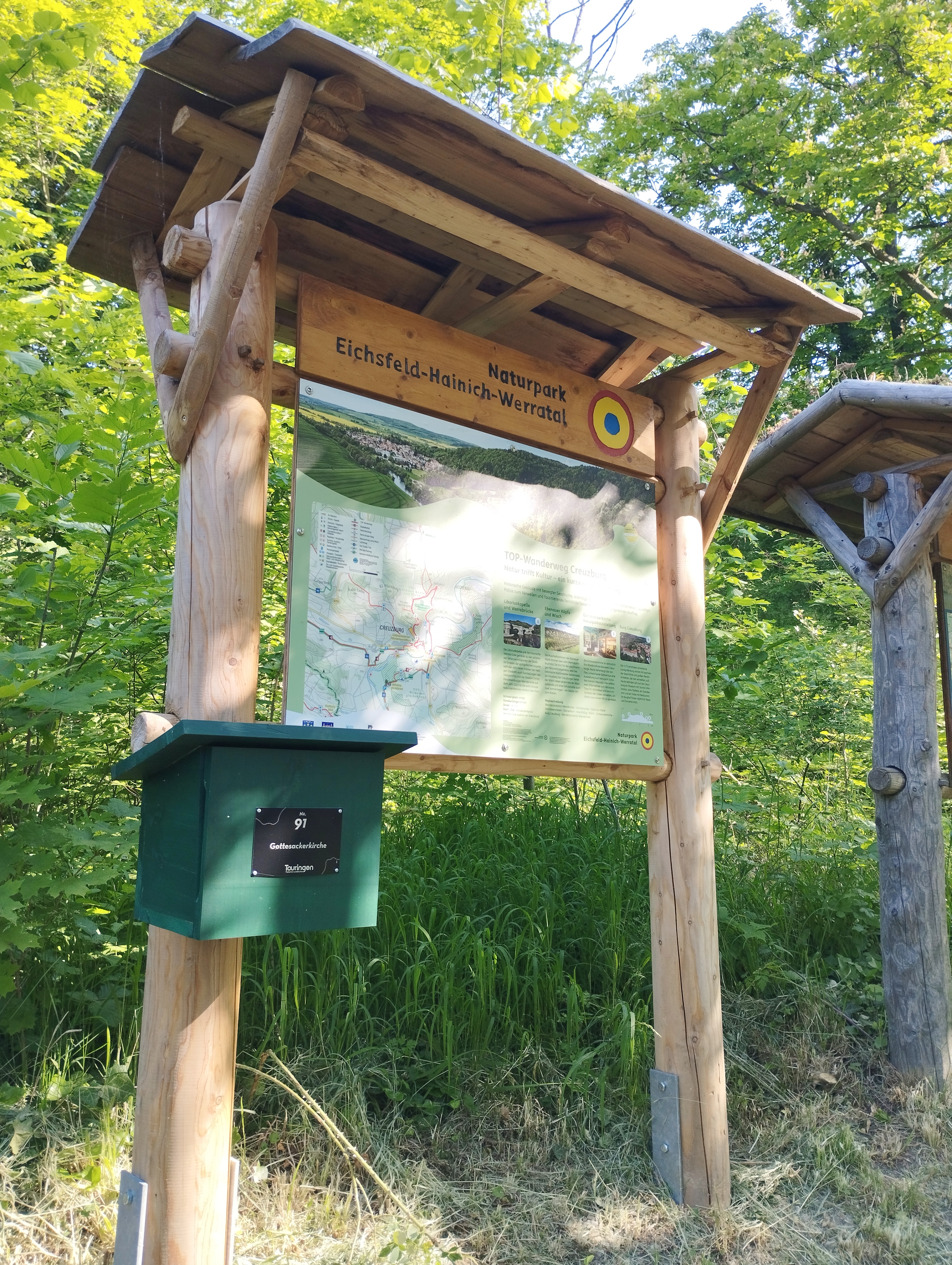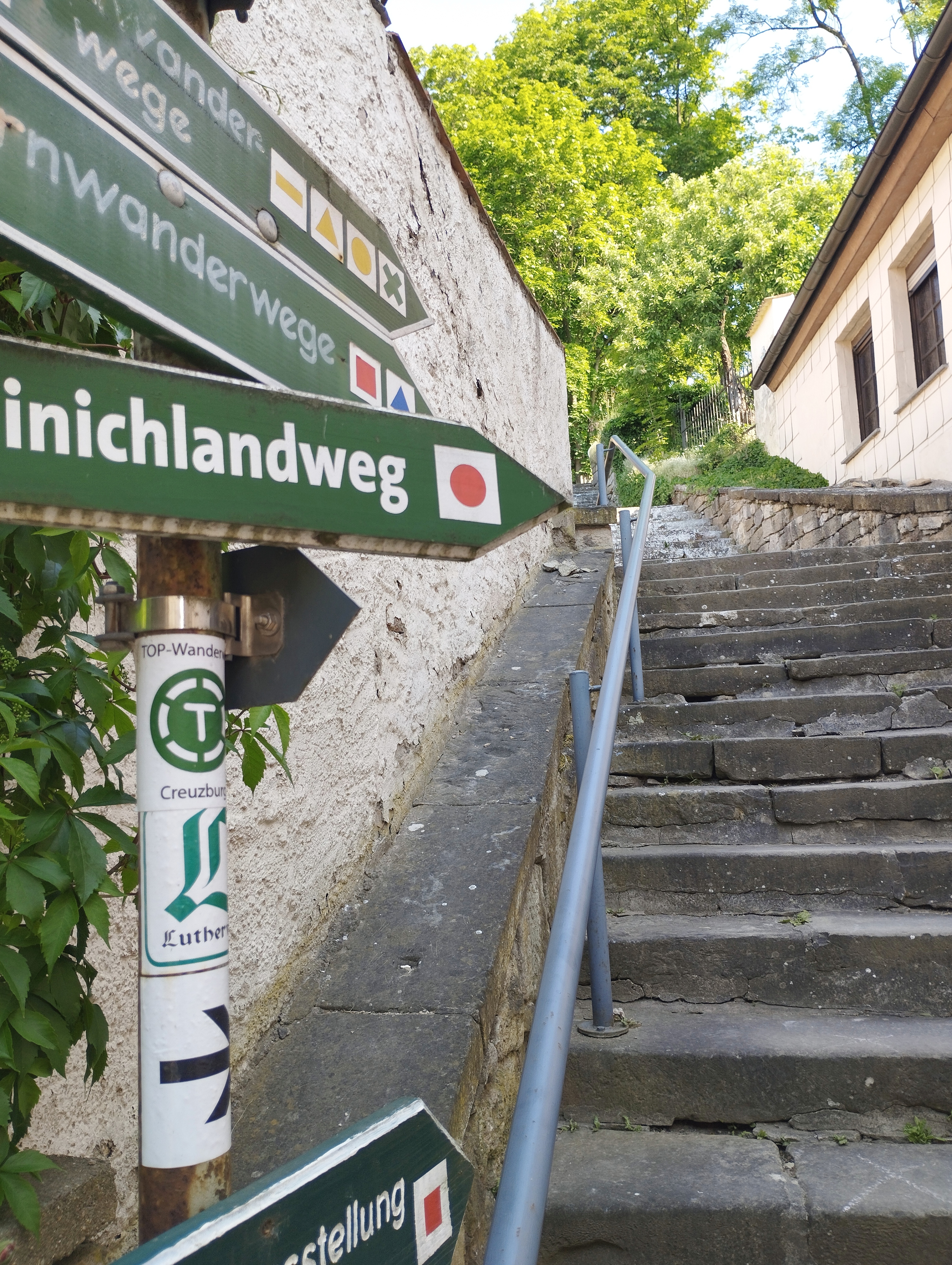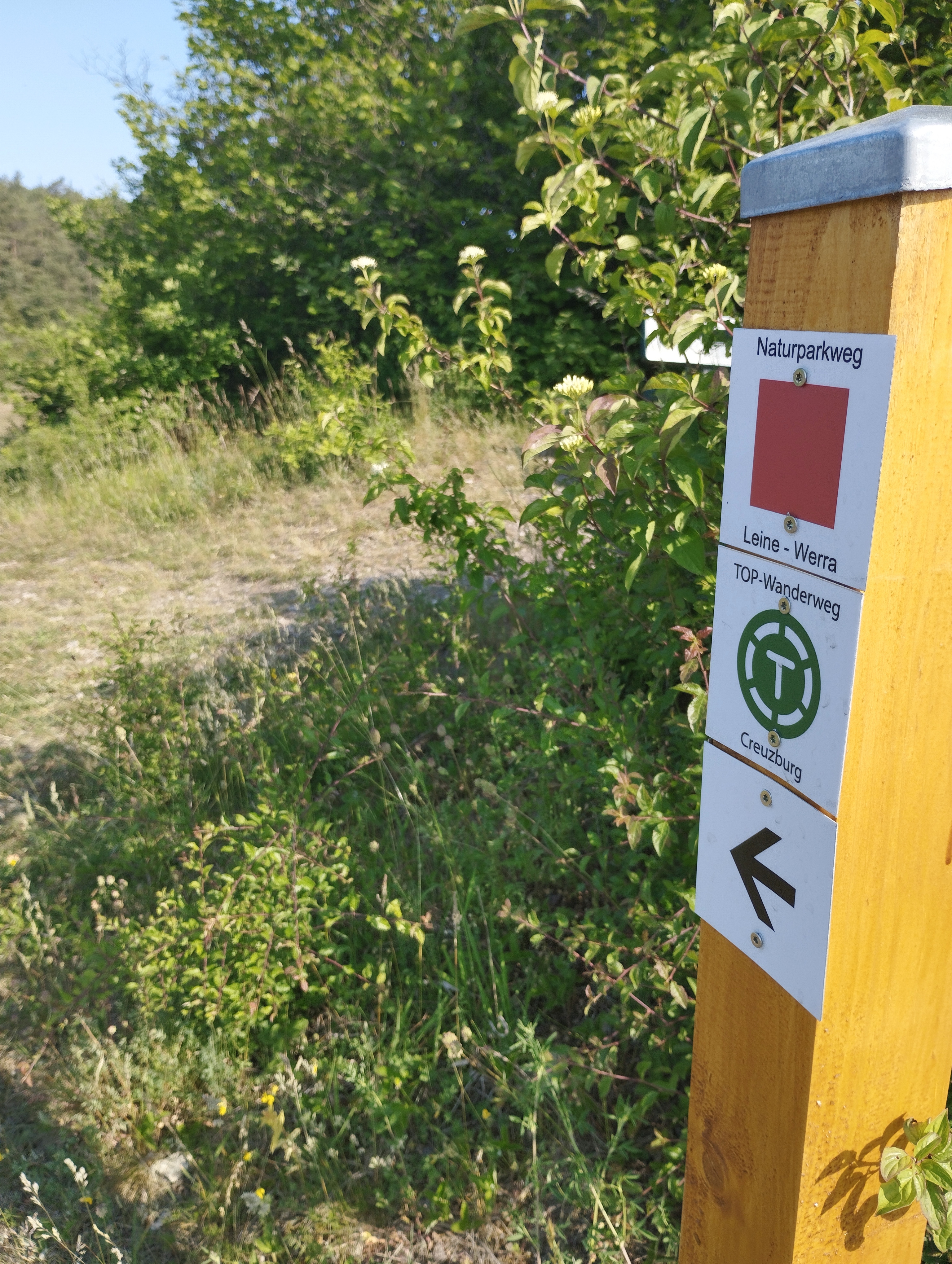 Mittwochmorgen, pünktlich um 9.00 Uhr steigen wir in Eisenach, ZOB in die Linie 170 in Richtung Eschwege ein. Knapp 20 Minuten später erreichen wir bereits unseren Startpunkt der anstehenden Wanderung – Creuzburg, Markt. Bei besten Frühsommerwetter beginnt die Tour. Sie führt uns, den Wegemarkierungen – einem weißen „T“ auf grünen Grund – folgend an einige der schönsten Plätze rund um Creuzburg. Der Rundwanderweg verbindet mit seinen ca. 7 km Länge Kulturstätten mit abwechslungsreichen Natur- und Kulturlandschaften. Mit einem entspannten Schritt, jedoch ohne große Pause ist die Strecke in gut 2 Stunden zurückzulegen. Entlang des Weges lädt eine Vielzahl an Rastplätze und hölzerne Liegen zum Verweilen und Genießen ein. Um 10.25 Uhr nehmen wir den Linienbus 170 zurück nach Eisenach, ZOB.
